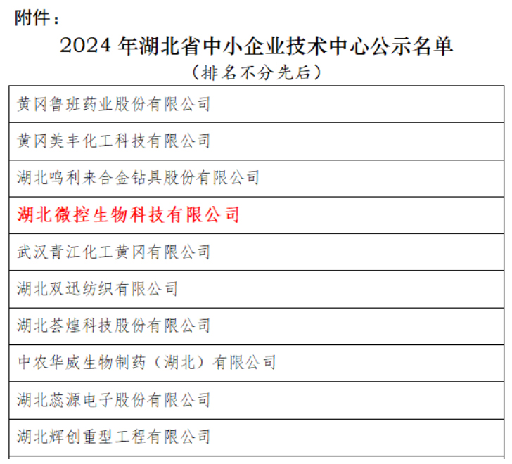近日,根據(jù)湖北省經(jīng)濟(jì)和信息化廳發(fā)布的《關(guān)于2024年湖北省中小企業(yè)技術(shù)中心名單的公示》,湖北微控生物科技有限公司榜上有名。此次申報(bào)的湖北省中小企業(yè)技術(shù)中心,是湖北省為推動(dòng)中小企業(yè)專精特新發(fā)展而設(shè)立的重要?jiǎng)?chuàng)新平臺(tái)。公司憑借擁有自主知識(shí)產(chǎn)權(quán)的工藝技術(shù)優(yōu)勢(shì)及在行業(yè)內(nèi)領(lǐng)先水平的資深研發(fā)團(tuán)隊(duì)。順利通過嚴(yán)格的審核評(píng)估